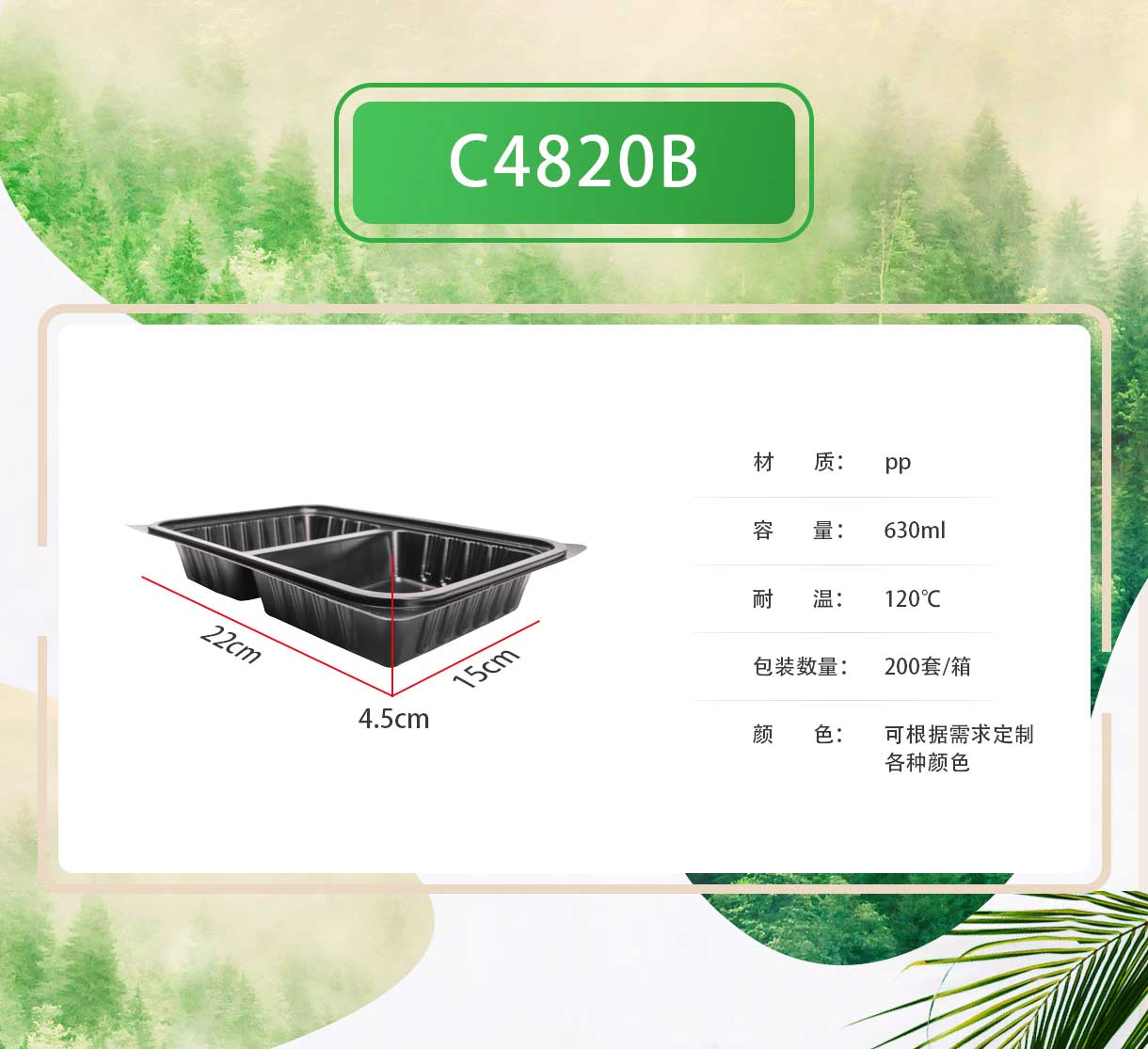 BOPS蓋黑色方形兩格快餐盒